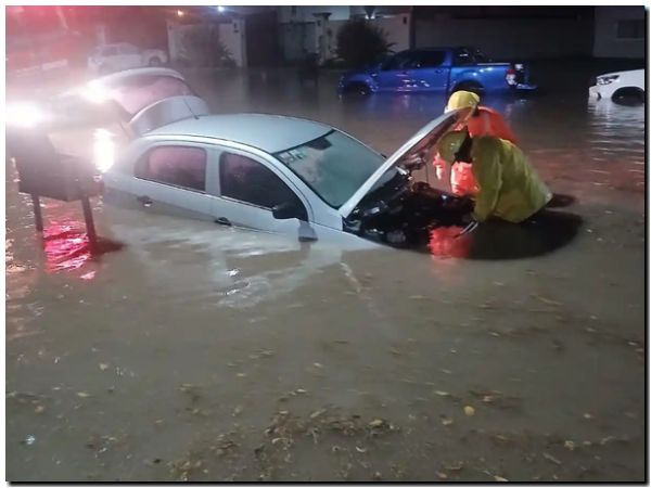 La imagen más impactante de la jornada se centró en un automóvil sumergido hasta la altura de las ventanillas en la intersección de las avenidas Conturbi y Teodosio Alaniz.