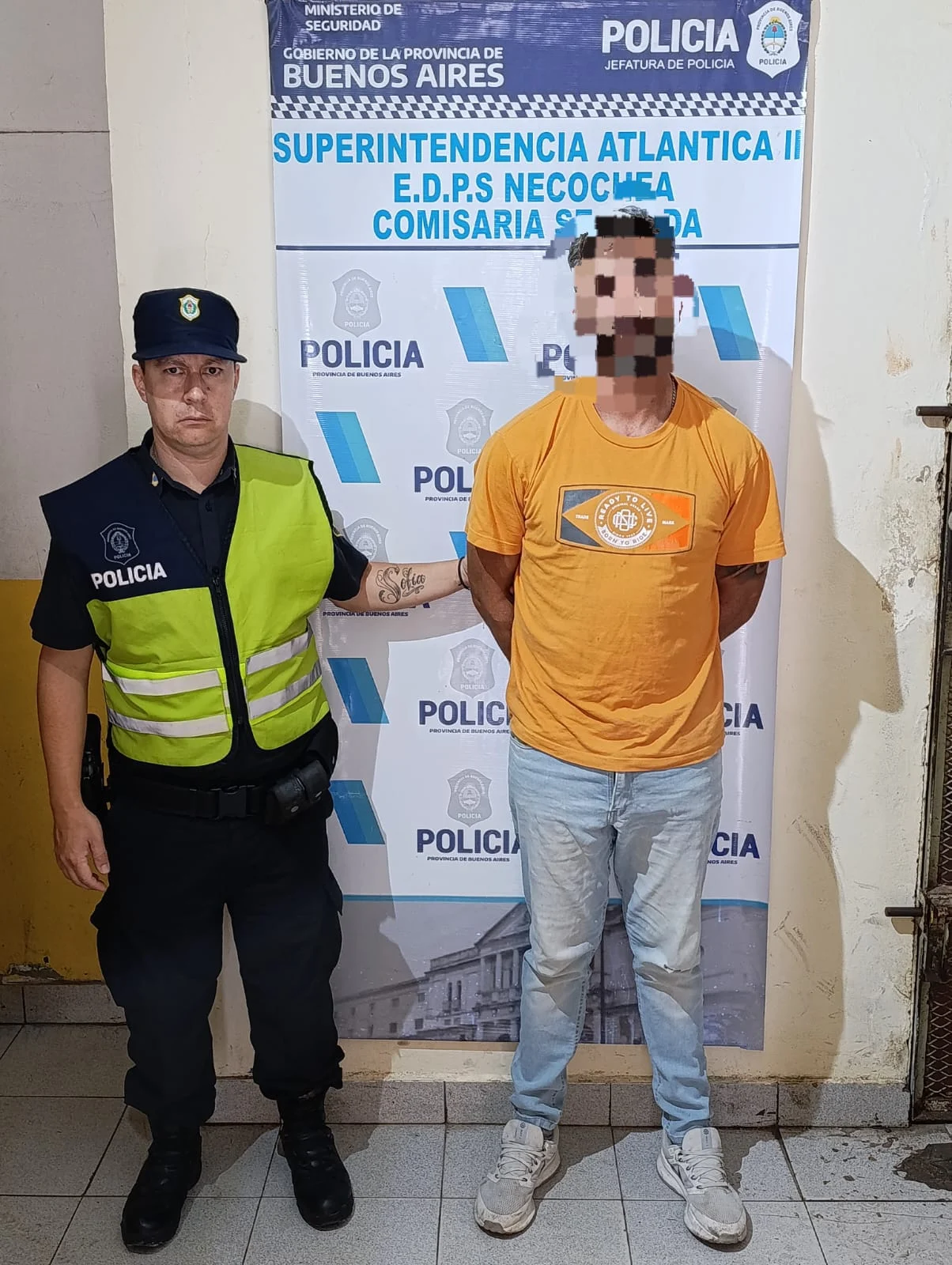 El detenido fue trasladado a la sede de la Comisaría Segunda de Necochea, donde quedó alojado a disposición de la Justicia.